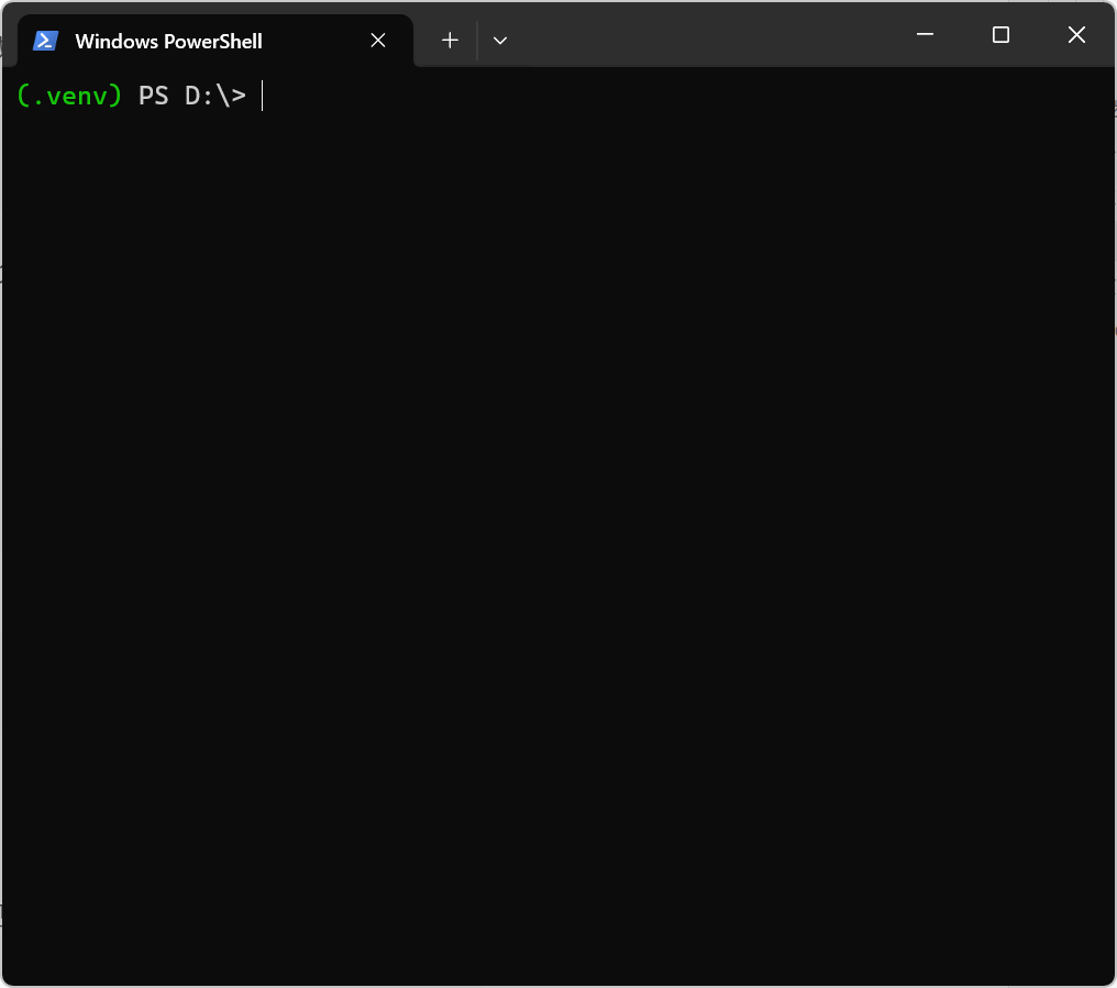无论是 cmd 或者 Powershell,执行成功后命令提示符前都会多一个 (.venv),例如我用的是 Powershell 执行后的是这样的: